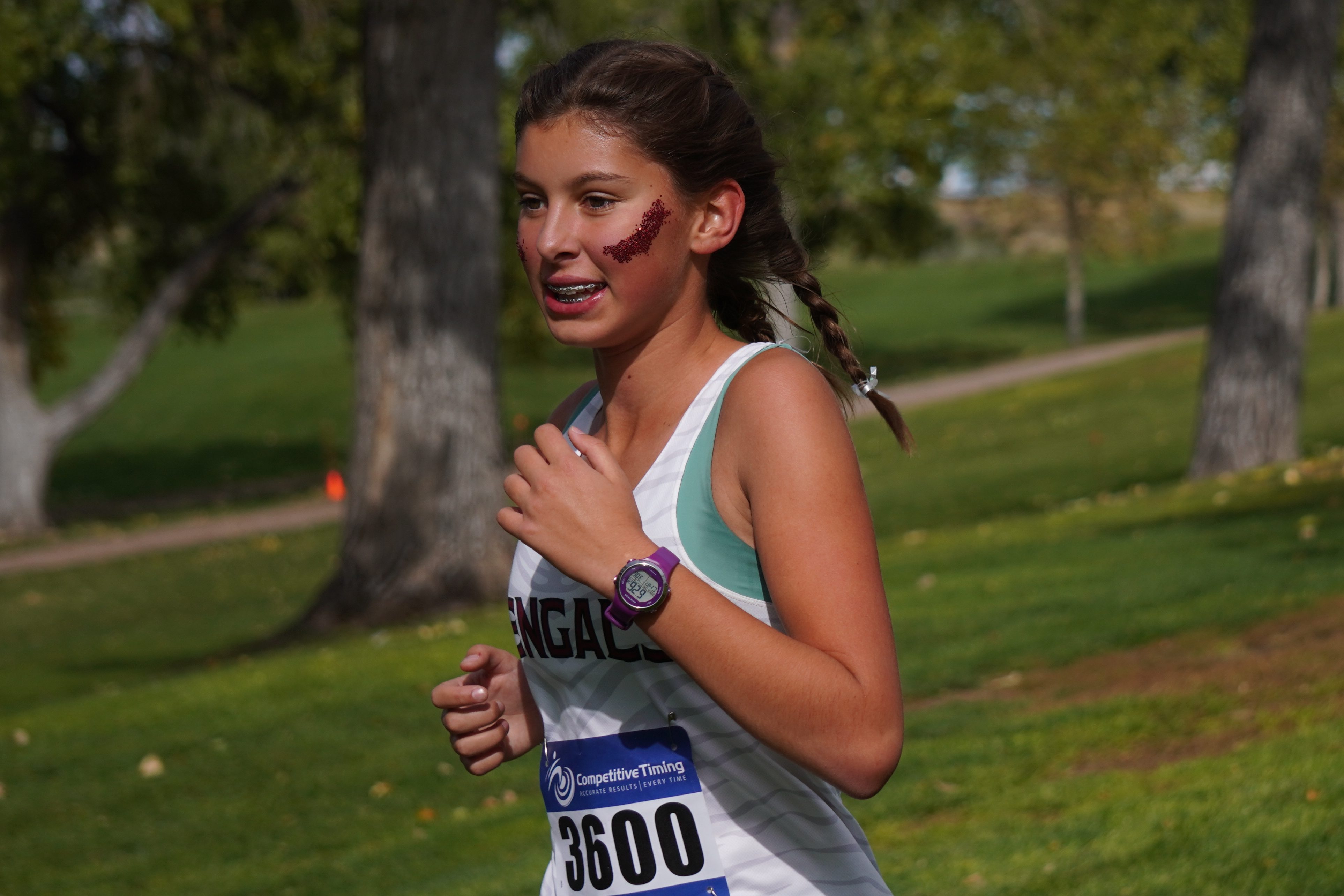 Next, up stepped junior Kate Lee in the No. 1 race for Helena and step up she did. She entered the race with the 14th-fastest time and placed eighth with a 10-second personal best of 19:51 with a smile on her face for nearly all 3.1 miles.