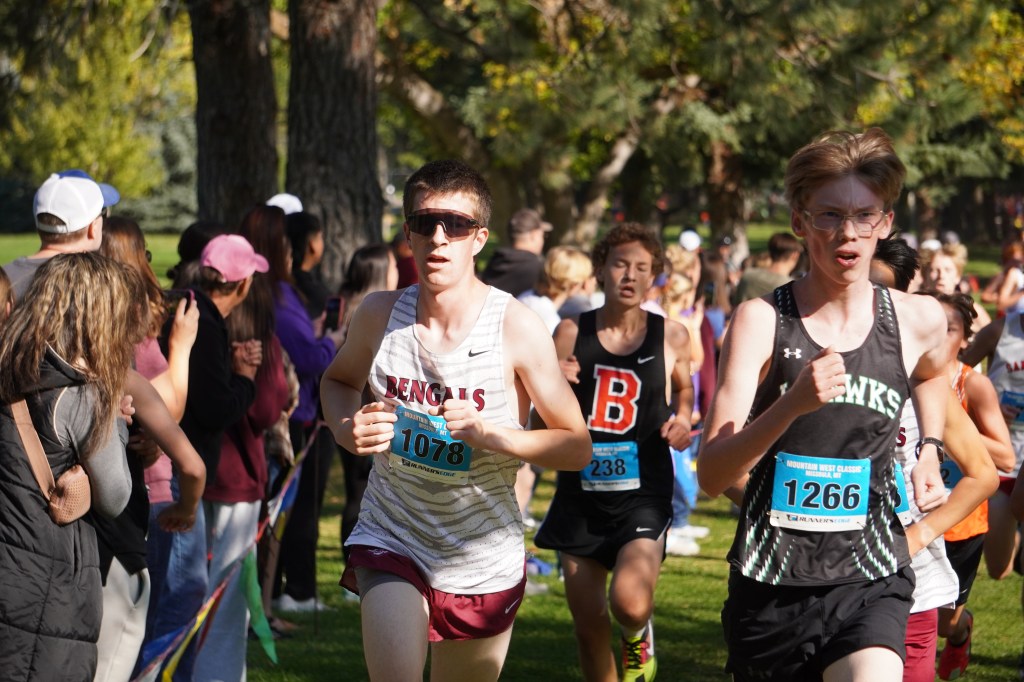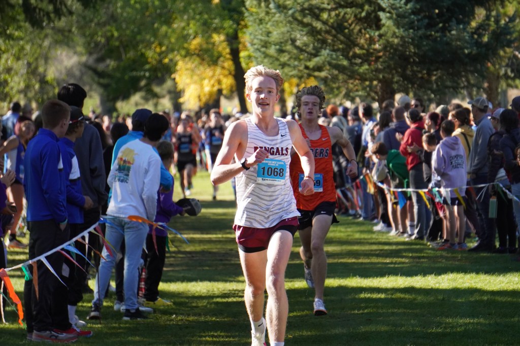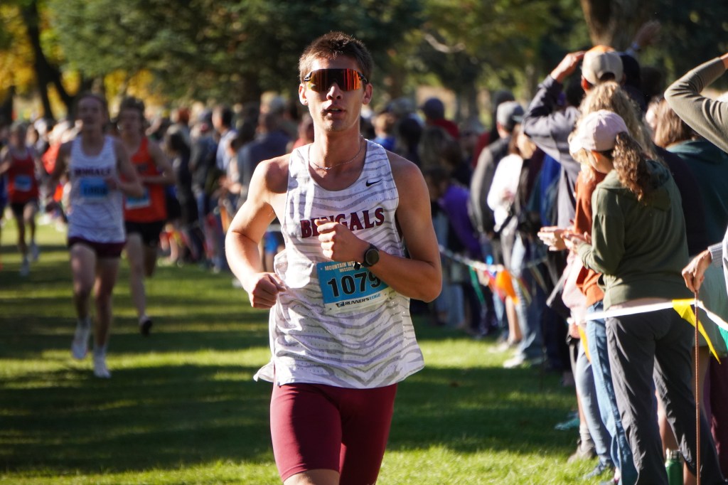Senior Henry Sund seemed unfazed by the runners around him, stormed to an early lead and never looked back, winning the No. 3 race in 16:02 – expanding the Bengals lead to a commanding 7-15 and releasing some of the pressure teammates Milo Kauffman, a sophomore, and Elliot Stimpson, a senior, might have been feeling as they were queued up for the No. 2 and No. 1 races.